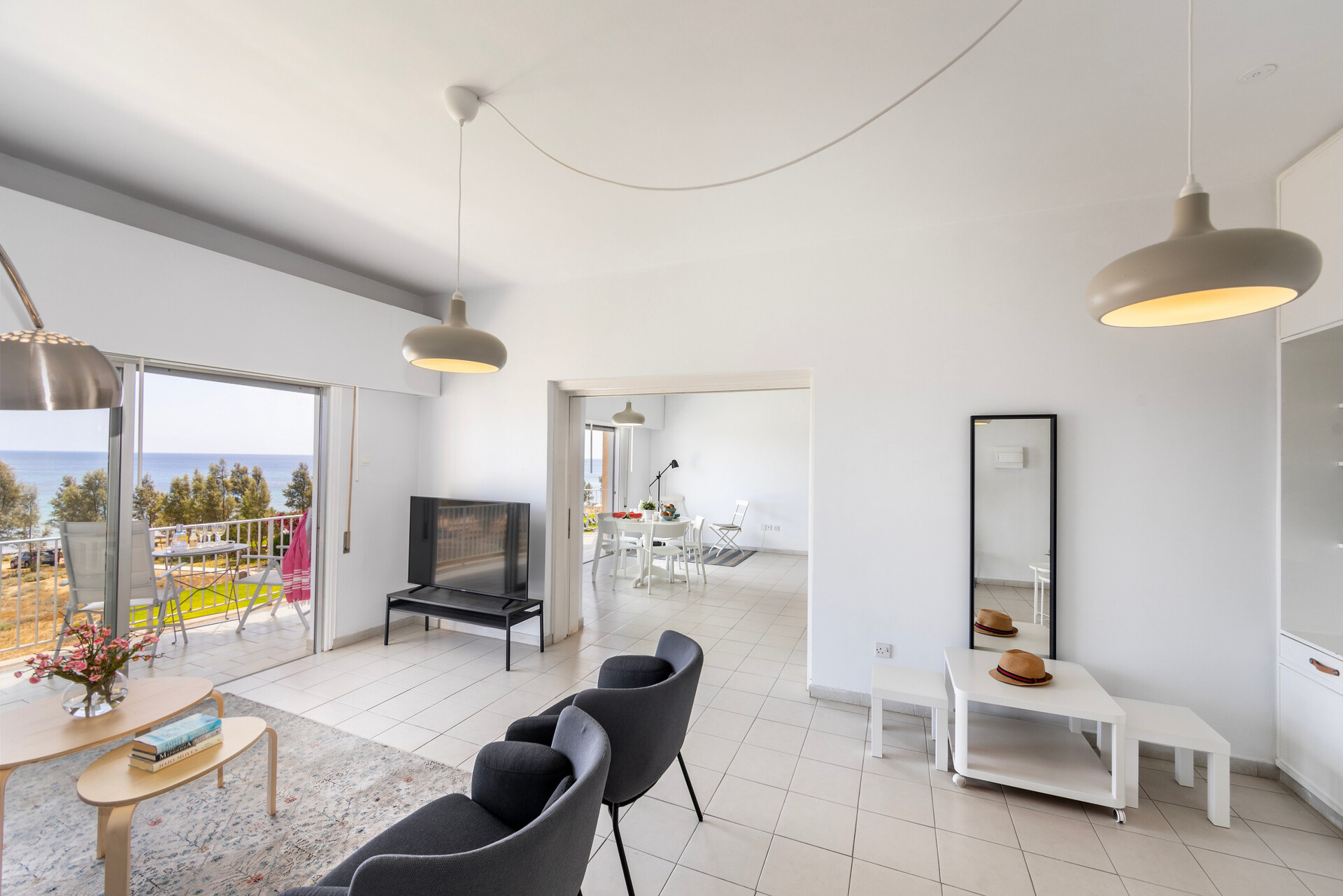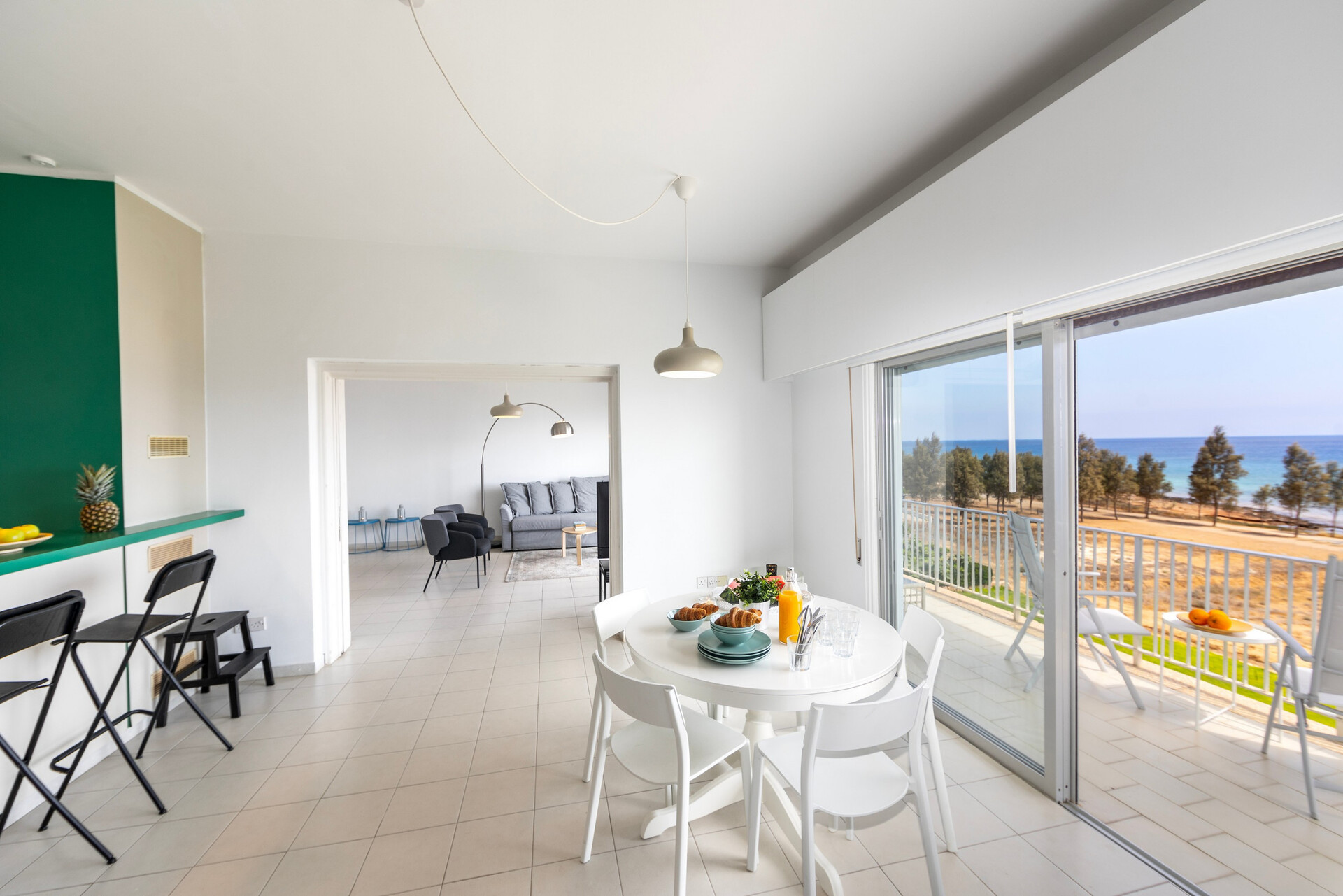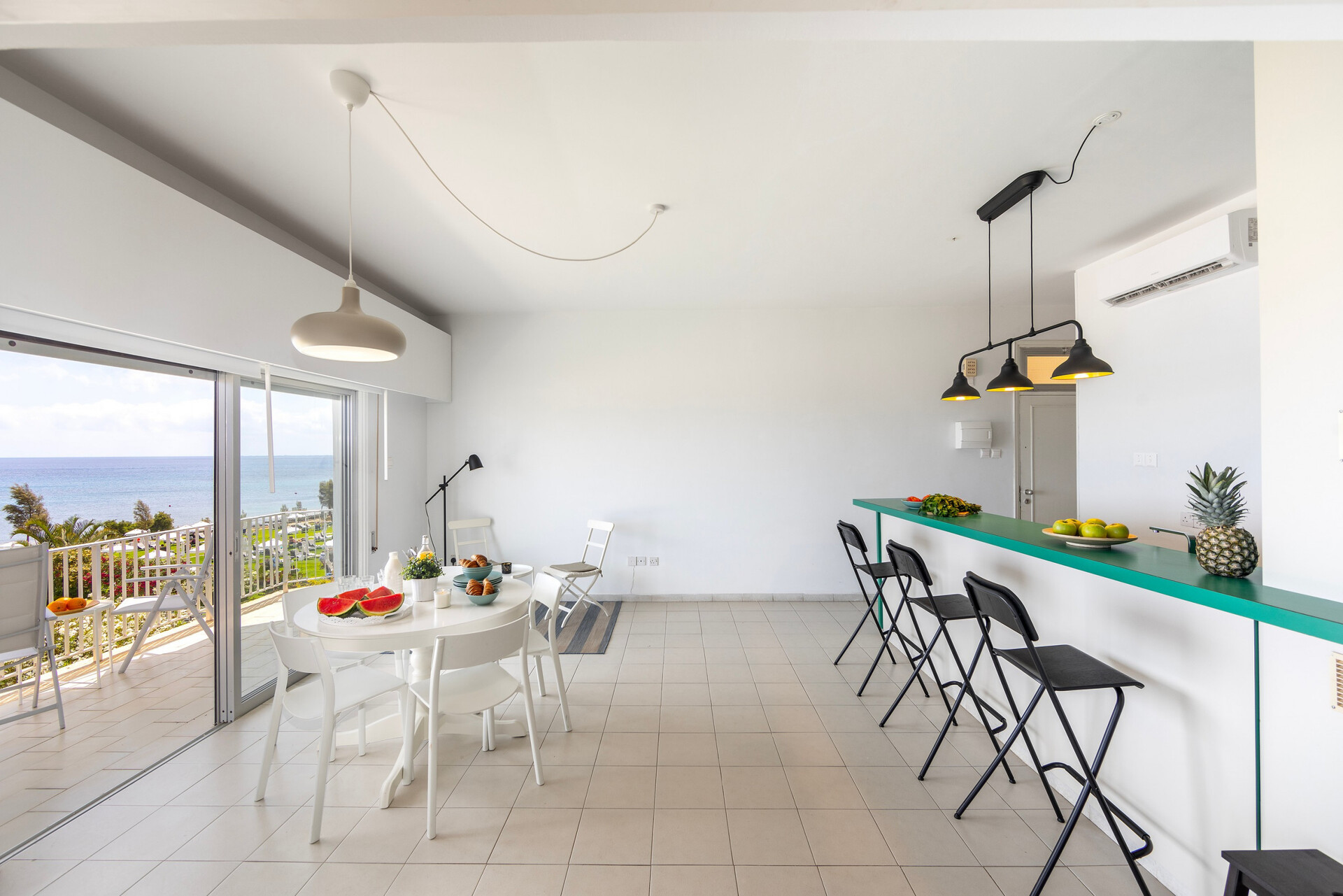 Protaras H2O Seafront Suite is situated right next to Crystal Springs Beach and offers amazing sea views from the balcony as well as the living room. The lawn covered area in front of the building is ideal for sunbathing and child play and just to the right is a fully organized beach and Aigialos, a modern lounge bar restaurant on the beach for both day and night relaxation.This comfortable holiday suite has been completely renovated, combining 2 one-bedroom apartments into a spacious two-bedroom, with an ample open plan kitchen, dining and living room area. The living room can be isolated from the kitchen-dining area with sliding doors or joint to obtain amble space for every family member to chill in its own favourite spot, but still be together.H2O Suite offers a comfortable living room and dining area with a modern and minimal style furniture that includes a comfortable sofa-bed, flat screen TV and dining table as well as fully equipped kitchen with all modern appliances.H2O Suite features two bedroom and two shower rooms as well as a double sofa bed in the living room so in total it can comfortably sleep six persons. The master bedroom is equipped with a large double bed while the second bedroom with two single beds that could be optionally converted into a double at the guest's request. Along the living room there is a long balcony, ideal for enjoying a refreshing drink while watching blue Mediterranean waters.H2O Suite is fully equipped, fully air-conditioned and offers free parking, private high-speed Wi-Fi and the satellite TV with channels in many languages as well as many films and TV series free of charge.Overall H2O Suite is ideal for a family of up to 6 persons.Protaras H2O Seafront Suite is situated in Ayia Triada, near the new built Protaras Marina and offers amazing sea views. The lawn covered area in front of the building is ideal for sunbathing and child play and just to the right is a fully organized beach and Aigialos, a modern lounge bar restaurant for both day and night relaxation. A few minutes' walk further down is the picturesque Sirina Bay and Ayia Triada Beach.Just up across the road from the block of flats within a couple of minutes' walk you will find a kiosk, mini-supermarket store a typical English pub, Onasis Fish Restaurant, Aigialos Beach Lounge Bar, as well as one of the most sought after hot-spots for children of all ages, the famous Sirina Bay.At Central Protaras only 2 kms away, you can find many beautiful, white-sand beaches including the famous Fig Tree Bay and Sunrise Beach with lots of water sports on offer like water-skiing, windsurfing, wake surf, scuba diving, canoeing, paragliding, fly fish and just about any water sport you may want. Protaras Central Strip also offers a plethora of good local and international restaurants, pubs, cafes and a thriving nightlife in the summer months.Closer to the apartment, less than three minutes’ drive away is the more local town of Ayia Triada/Pernera, with its own 'strip of restaurants which are favoured amongst the locals for their high quality. Within 5 minutes’ walk you can get to Golden Coast Fishing Harbor the romantic Sirina Bay or the child friendly Kalamies Beach.The more cosmopolitan resort of Ayia Napa is only 10km away and offers great night life, excellent beaches, a large Luna-Park for all ages and one of the biggest waterparks of the Eastern Mediterranean.Listed Prices include 150KWh of electricity per week which is more than enough for normal use of the house. Additional electricity consumption is charged at Euro0.40/Kwh.For stays shorter than 5 nights there is a surcharge of Euro100 over and above the total booking amount.This property is suited for families. No parties or celebrations of any kind for any reason are allowed without the consent of the host. This is a residential property, and we require guests to respect the neighbourhood and keep noise to acceptable and reasonable levels at all times. Failure to observe these rules may result in the guest being asked to vacate the property without any compensation.This property enjoys the professional management of BMA Cyprus Holiday Group. Our experienced reps have a vast knowledge of the Island and all the beautiful sights Cyprus has to offer. They can assist you in Transfer arrangements, excursions, car rental and much more. Our Maintenance and Housekeeping are available 24/7 to ensure you get the very best out of your holiday.Euro300 Refundable Security Deposit For Accidental Damages