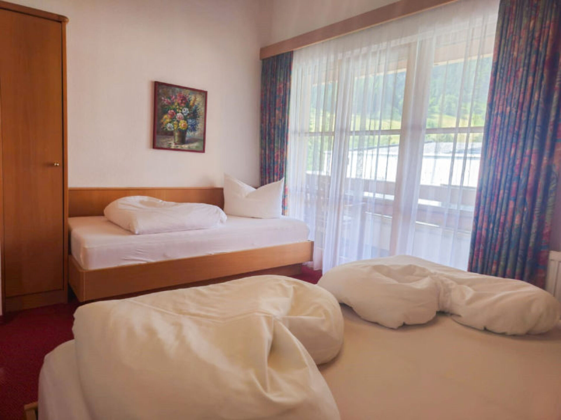 "[5startitle]", 2-room [5startitle]3 m2 on 3rd floor. Spacious, comfortable and cosy furnishings: 1 room with 1 bed (90 cm, length 200 cm), 1 double bed. Exit to the balcony. Kitchen-/living room (4 hot plates, oven, dishwasher, toaster, kettle, electric coffee machine) with dining table and satellite TV (flat screen). Shower/WC. Heating. Carpet. Balcony furniture. Facilities: hair dryer. Please note: non-smokers only.