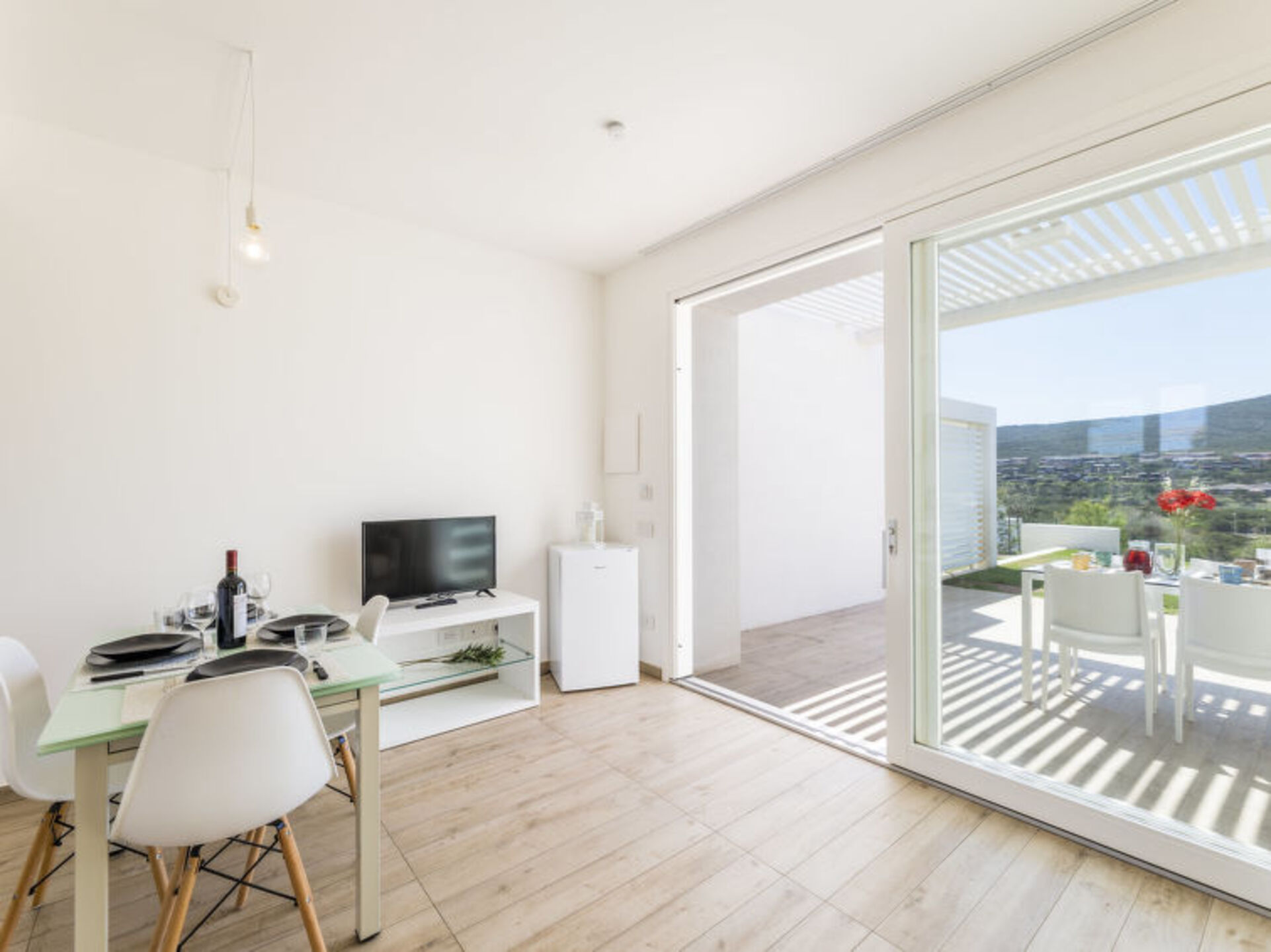 "Sardinia Villa 1023" is a 2-room apartment that exudes brightness, comfort, and style. The living/sleeping room features a cozy double sofa bed, a dining table, and satellite TV for your entertainment. The apartment also includes a lovely double bedroom and a kitchenette equipped with modern amenities such as a dishwasher, toaster, kettle, and microwave. The bathroom is equipped with a shower/bidet/WC. Enjoy the convenience of air-conditioning and forced-air heating during your stay. Step out onto the balcony or terrace and relax with the terrace furniture and balcony furniture provided. Additional amenities include a children's high chair, a hair dryer, and internet access via WiFi. Please note that this is a non-smoking property and allows for one small pet/dog. Rest assured with a smoke alarm for added safety.