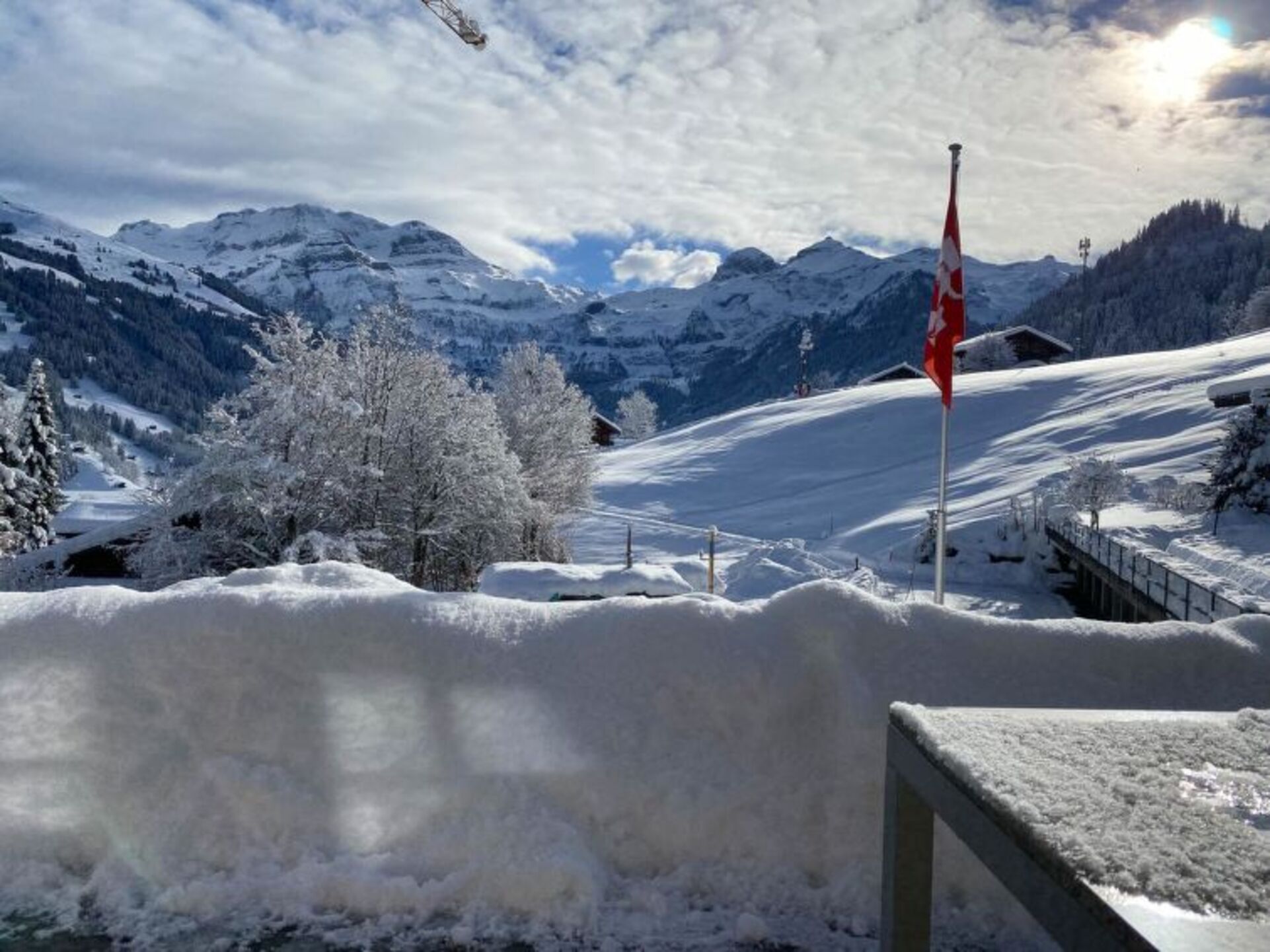 59 m2. More information by the provider: Modern holiday apartment near the village of Lenk, for 2 to 4 people. The apartment is newly renovated and is situated in a sunny, quiet location. The ski slope of the Lenk-Betelberg ski area is nearby. The public swimming pool is in walking distance and the centre of Lenk is only 10 minutes walk away. Unique view of the valley floor and the mountains of Lenk. Did you already know? With the Simmental Card (guest card) you can use all buses in Lenk free of charge and benefit from other attractive discounts. The apartment on the ground floor with entrance and wardrobe, open kitchen with oven, dishwasher, Nespresso coffee machine, living room with sofa corner, Satellite-TV /Radio, WLAN, dining corner with chairs. Bedroom I with double bed (1.80 x 2.0m), bedroom II with 2 single beds (0.90 x 2.00m), bathroom with shower, large terrace facing south. One parking space in the garage. Non-smoking apartment. Public transport included in the Simmental and Saanenland with the SIMMENTAL CARD: Overnight guests in the Lenk-Simmental holiday region travel free of charge on public transport for excursions with a valid guest card. The rent includes kitchen laundry, electricity, heating costs and one parking space in the garage, as well as bed sheed and bahtroom towels and final cleaning. Washing machine and dryer can be used on request. Ski room for for sharing.