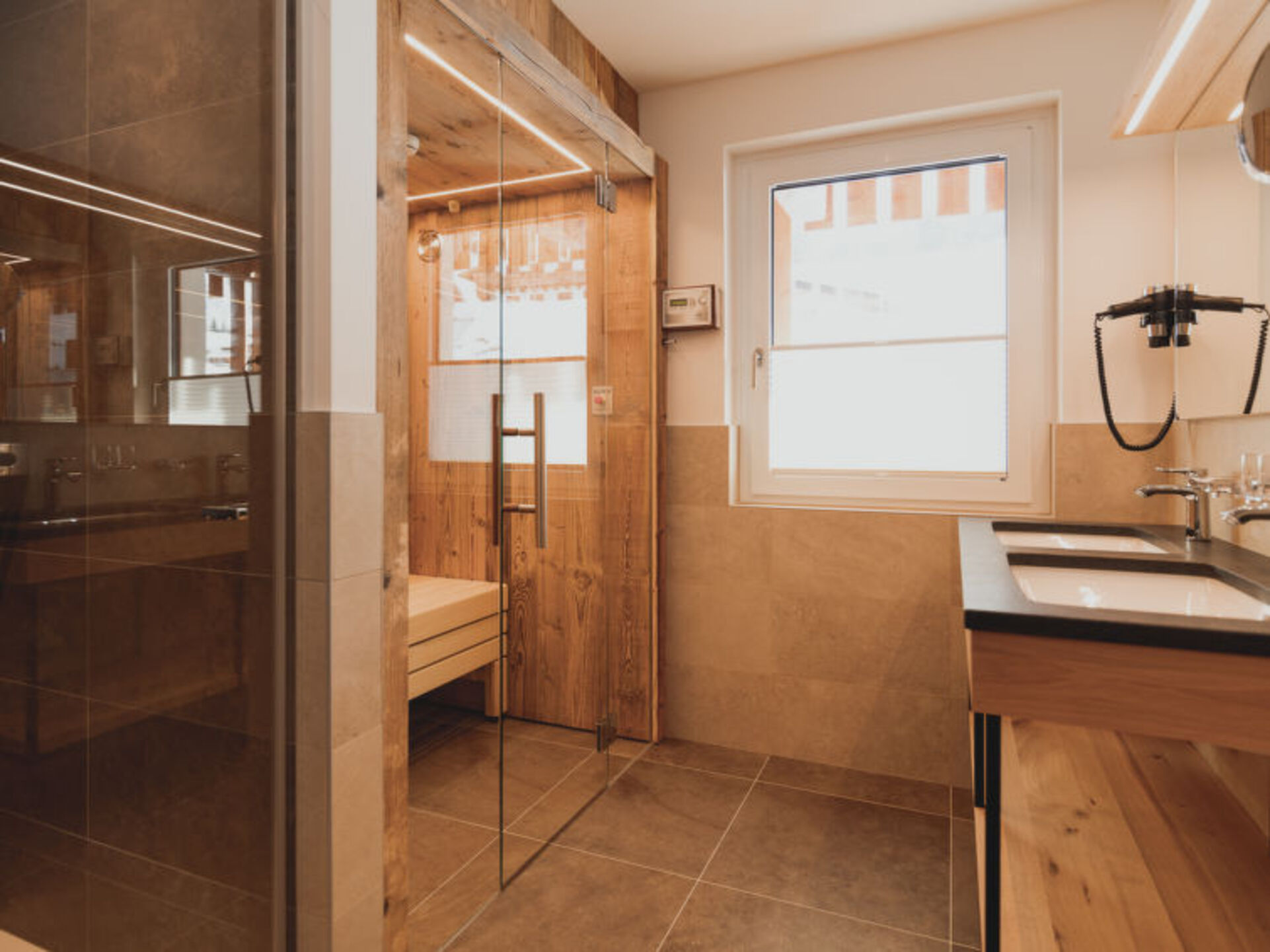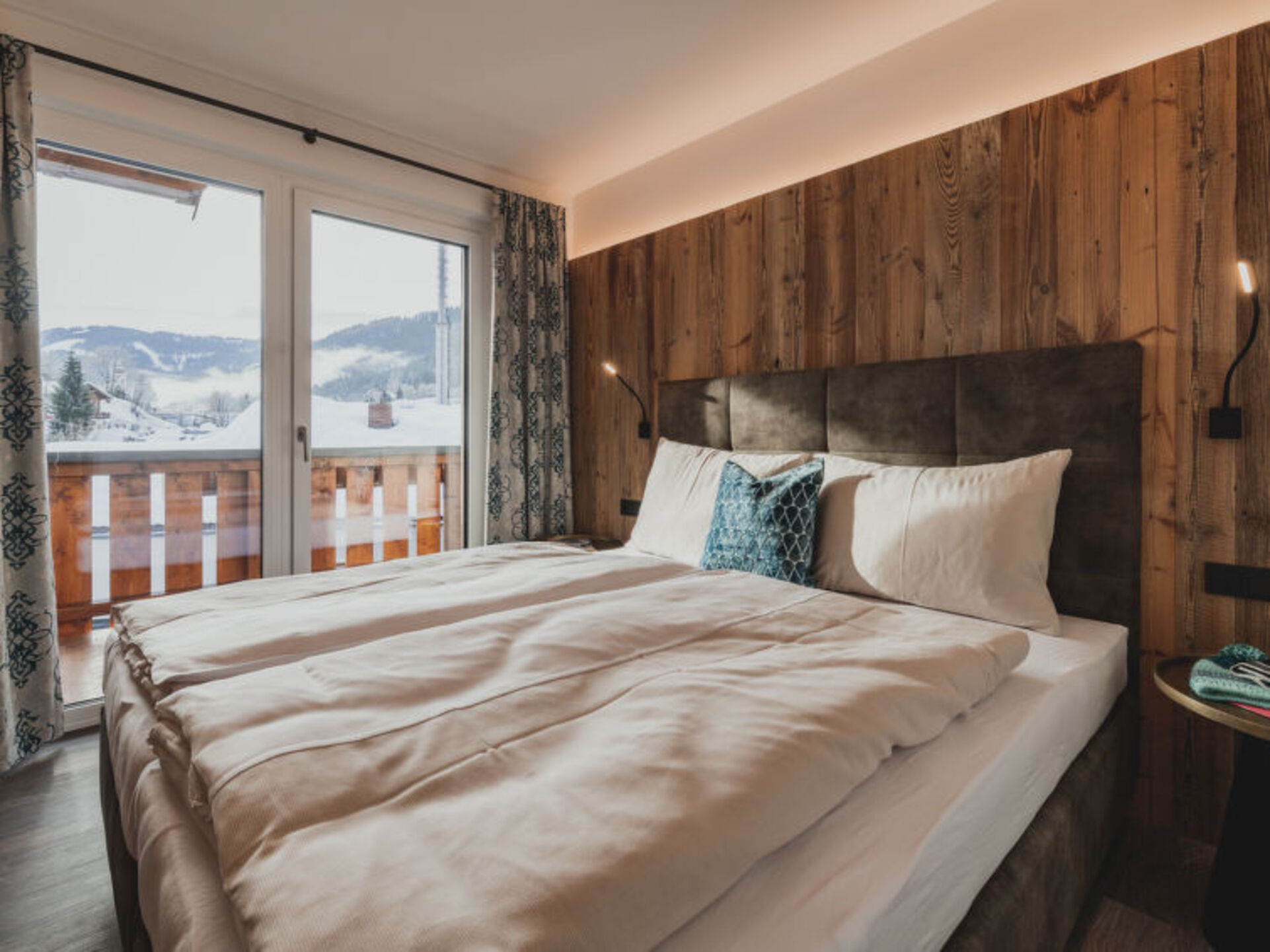 "[5startitle]", 3-room apartment 70 m2. Spacious and bright, tasteful furnishings: living/sleeping room with 1 sofabed, dining table and satellite TV (flat screen). 2 double bedrooms. Open kitchen (dishwasher, 4 ceramic glass hob hotplates, kettle, microwave, electric coffee machine, Capsules for coffee machine (Nespresso) extra). 2 showers/WC. Balcony. Balcony furniture. Beautiful view of the mountains, the countryside and the resort. Facilities: sauna, hair dryer. Internet (WiFi, free). Please note: non-smokers only. The sauna is an infrared cabin.