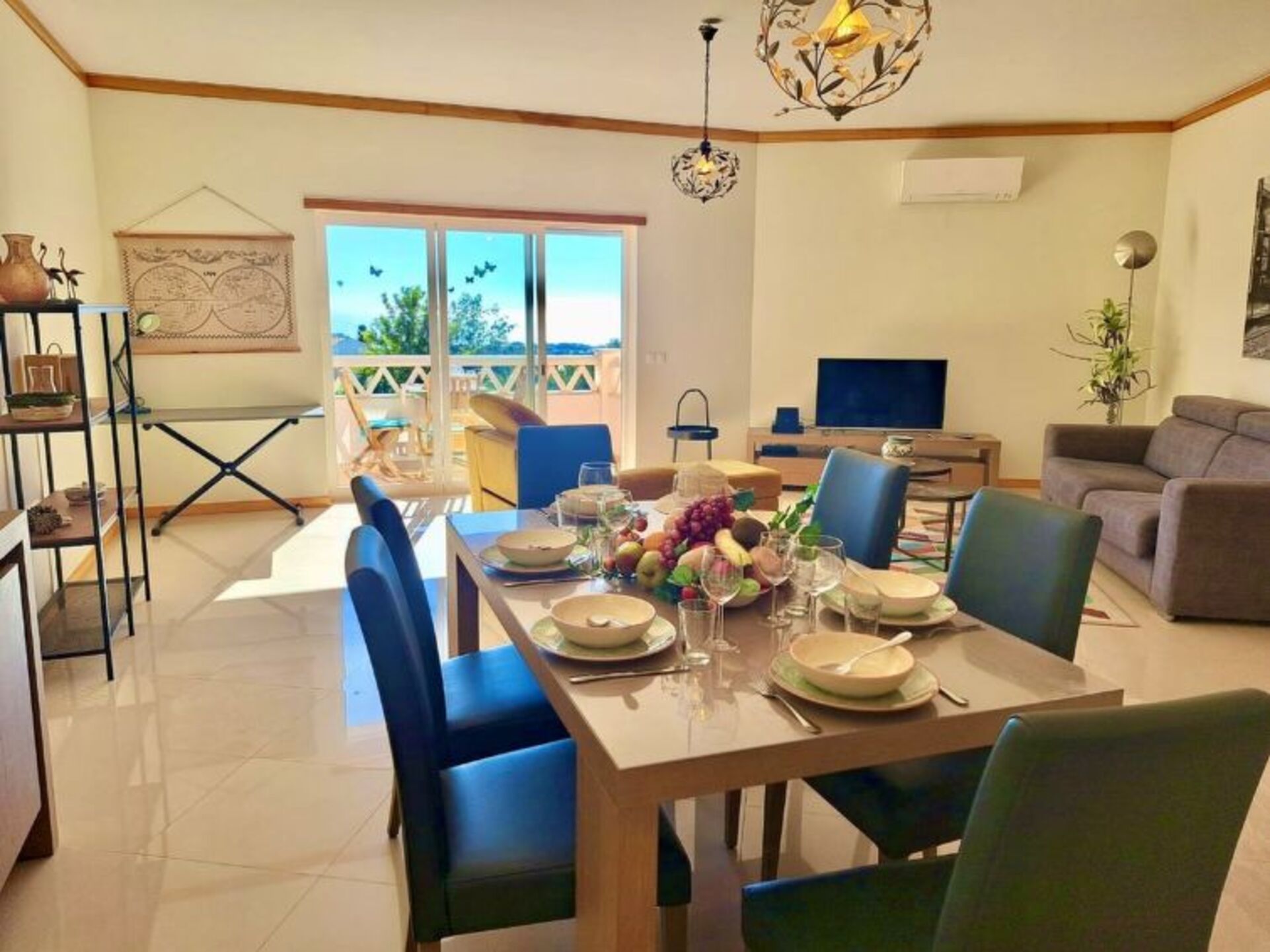 "Albufeira Villa 1138", 3-room apartment 135 m2, on the upper floor. Spacious and bright, very practical and cosy furnishings: living/dining room with 1 sofabed (160 cm, length 200 cm), dining table, cable TV, flat screen, air conditioning and forced-air heating. Exit to the terrace. 1 room with 2 beds (90 cm, length 200 cm), air conditioning and forced-air heating. 1 room with 1 french bed (180 cm, length 200 cm), bath/bidet/WC, air conditioning and forced-air heating. Kitchen (oven, dishwasher, Gas stove, 4 gas rings, toaster, kettle, microwave, freezer, electric coffee machine). Shower/bidet/WC. Very beautiful view of the sea. Facilities: washing machine, iron, children's high chair, baby cot for up to 2 year olds (extra), hair dryer. Internet (WiFi, free). Reserved parking at the house. Suitable for families. Albufeira Villa 1138