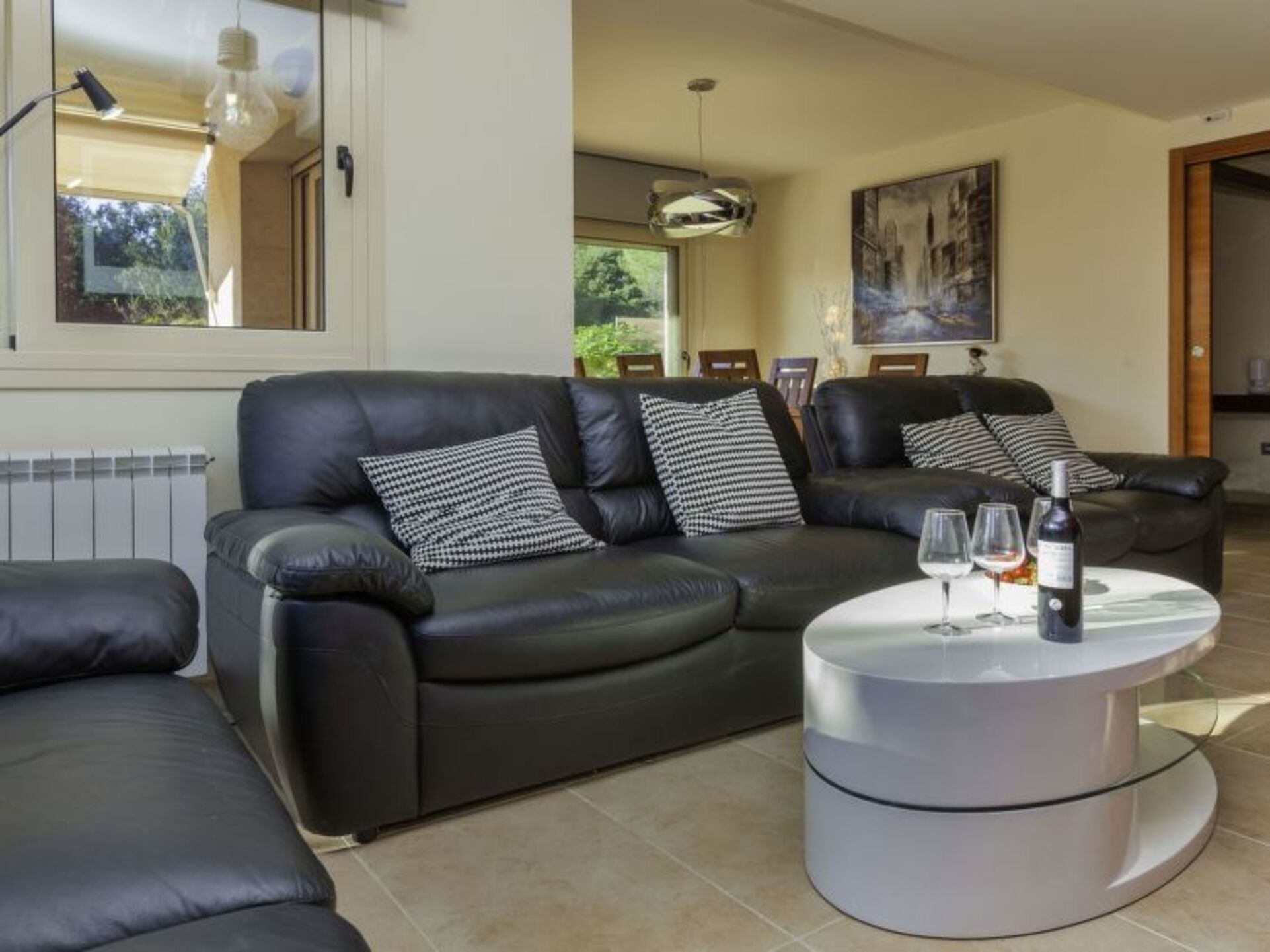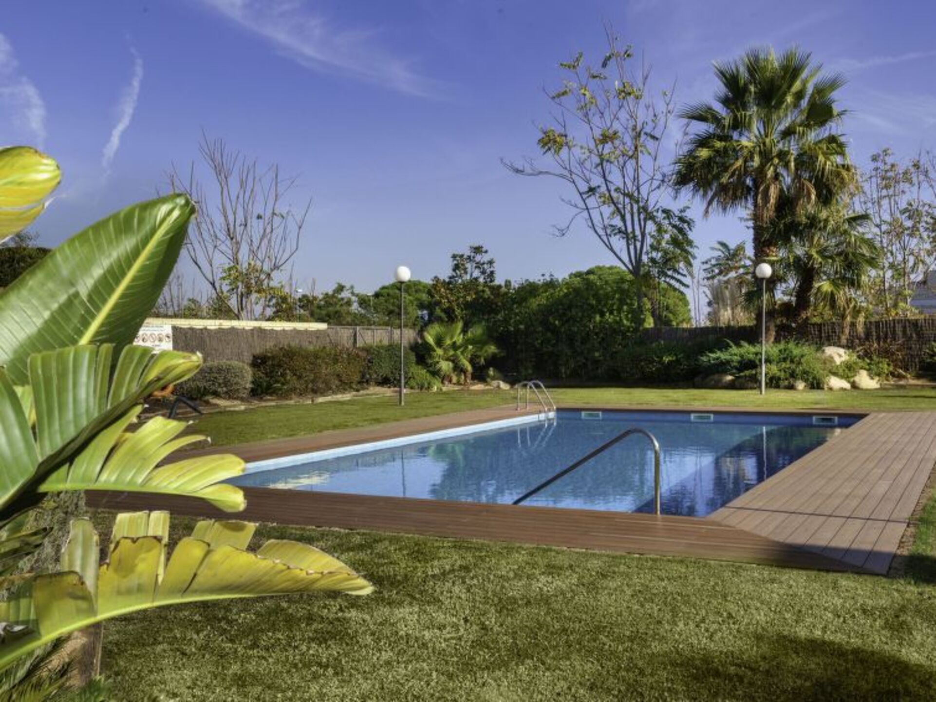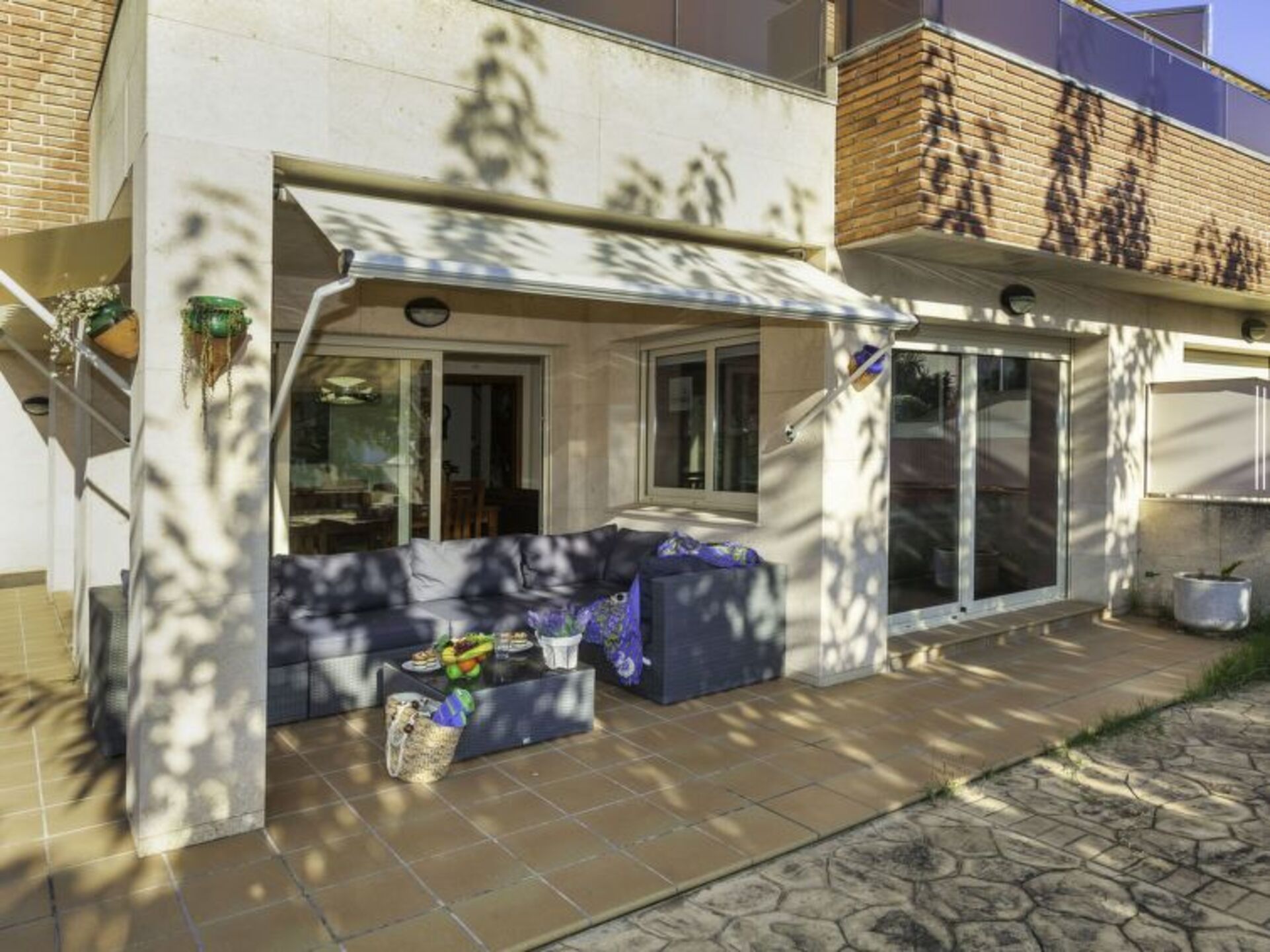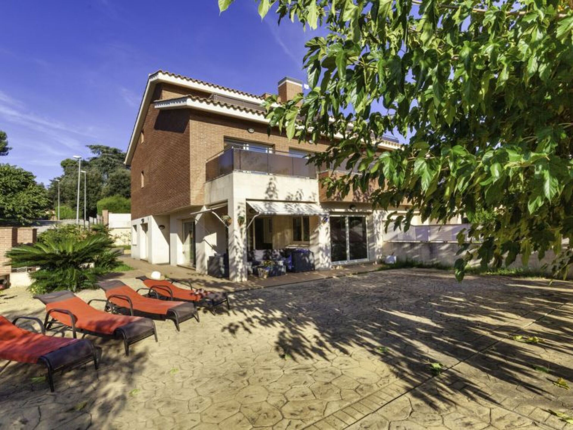 [5startitle] 1 km from Lloret de mar: Young people isn´t allowed modern, luxurious terraced house "Mas Arboç", 2 storeys, renovated in 2020. 4 houses in the resort. In a quiet, sunny position, traffic calmed area, 800 m from the sea, 800 m from the beach, south-west facing position. For shared use: large garden with lawn, swimming pool angular (seasonal availability: 01.Jun. - 31.Oct. pool opening hours: 10:00-21:00). Outdoor shower. Private: property (fenced), large, beautiful garden. In the house: WiFi, air conditioning, washing machine. Stepped path (3 steps) to the house. Roofed, parking (for 2 cars). Shop, supermarket 200 m, restaurant 300 m. Nearby attractions: Waterworld lloret de mar 2 km, Marinland Blanes 8 km, Pueblo medieval de Tossa de mar 13 km. Please note: car recommended. Suitable for families. The owner does not accept any groups. The owner does not accept any youth groups. Part of the house is closed and unoccupied. Neighbourhood highly sensitive to noise. Quietness and good behaviour expected.