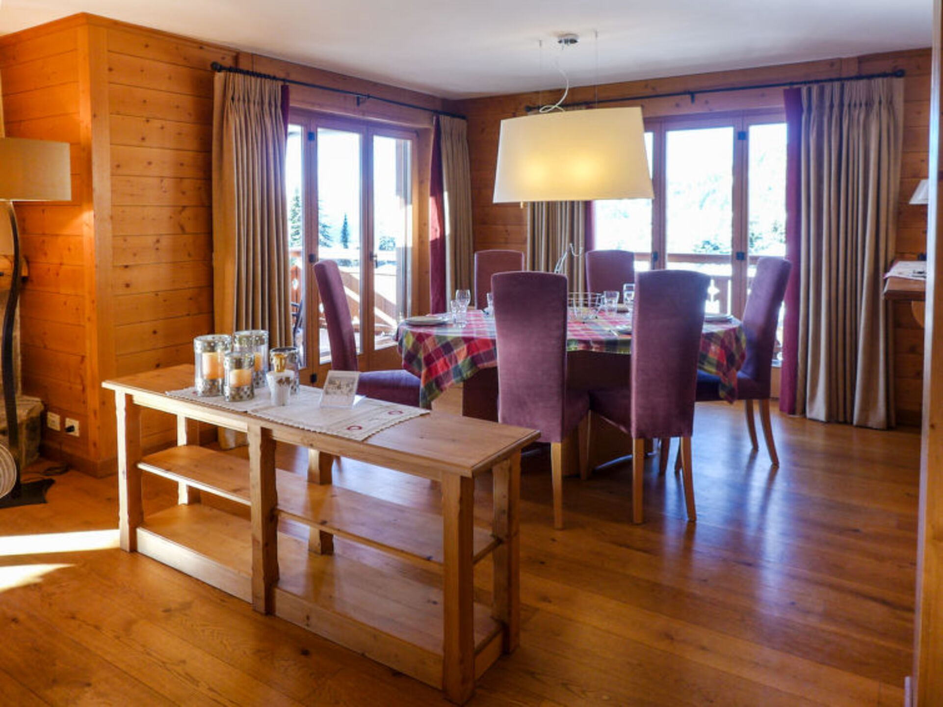 "[5startitle]", 5-room apartment 158 m2 on 1st floor, south facing position. Spacious, comfortable and tasteful furnishings: large living/dining room 50 m2 with open-hearth fireplace, dining table and TV (flat screen). Exit to the balcony, south facing position and west facing position. 1 room with 1 french bed (1 x 160 cm). Exit to the balcony, west facing position. 1 room with 1 french bed (1 x 180 cm), bath/WC and double hand-basin. Exit to the balcony, west facing position. 1 room with 1 french bed (2 x 90 cm). Exit to the balcony, north facing position and west facing position. 1 room with 1 french bed (2 x 90 cm), shower/WC. Open kitchen (oven, dishwasher, 4 ceramic glass hob hotplates, toaster, kettle, microwave, freezer, electric coffee machine, Capsules for coffee machine (Nespresso) extra, raclette grill, fondue Set (cheese)). Bath/WC, sep. WC, double hand-basin. Balcony 31 m2, south facing position and west facing position, 2 small balconies 8 m2, north facing position and west facing position. Balcony furniture. Beautiful view of the mountains. Facilities: washing machine, dryer, hair dryer. Internet (WiFi). Garage space n 3 + 3 (2 cars). Please note: non-smokers only.