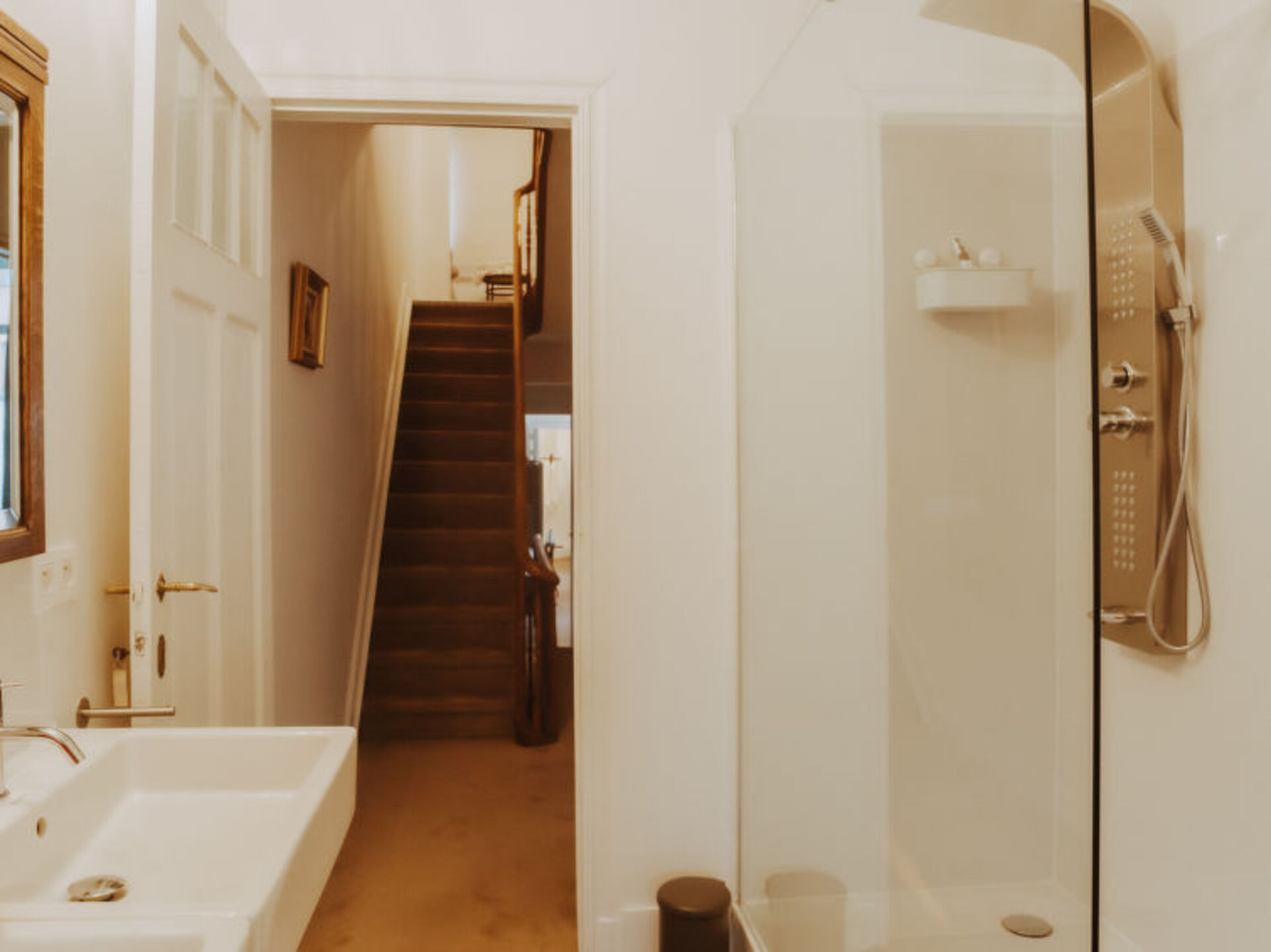 "[5startitle]", 7-room house 200 m2 on 3 levels. Spacious and bright, fully renovated in 2020, comfortable and tasteful furnishings: entrance hall. Dining room, window onto the courtyard with dining table and radio. Exit to the terrace. Large kitchen (oven, dishwasher, Gas stove, 7 gas rings, toaster, kettle, microwave, freezer, electric coffee machine) with dining table. Sep. WC. Heating. Upper floor: living room with digital TV, international TV channels and flat screen. 1 double bedroom with 1 double bed (160 cm, length 200 cm), shower/WC and hydro massage shower. Sep. WC. 2nd upper floor: 1 children's room with 2 x 2 bunk beds (90 cm, length 200 cm), shower/WC and hydro massage shower. 1 room with 1 x 2 bunk beds (90 cm, length 200 cm), 1 double bed (160 cm, length 200 cm). 1 double bedroom with 1 double bed (160 cm, length 200 cm). Shower, sep. WC, double hand-basin, hydro massage shower. 3nd upper floor: 1 double bedroom with 1 double bed (140 cm, length 200 cm), shower and hydro massage shower. Sep. WC. Patio. Facilities: hair dryer. Internet (WiFi, free). Please note: non-smoking house.
