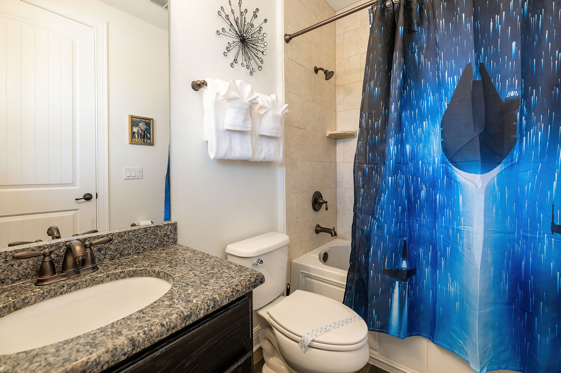 5 Star Villa Holidays is beyond thrilled to introduce the magnificent Orlando Villa 6598! This exquisite villa offers a Membership Level that grants you Unlimited Access to the fabulous amenities of Reunion Resort! Prepare to be enchanted by Orlando Villa 6598, a modern, rustic-style sanctuary boasting 5 bedrooms, 4 bathrooms, and located in the prestigious Reunion Resort within the Masters Landing community. Spanning an impressive 3,157 sq. ft., this villa features a private pool with a spillover spa, a captivating game room with professional arcades, a delightful entertaining loft, and two enchanting themed kids' bedrooms. Orlando Villa 6598 is the ultimate escape for your family, only a stone's throw away from the enchanting theme parks and local attractions that Orlando has to offer. Step inside and be mesmerized by the rich tones and modern, rustic allure of the large open concept living area. Sink into the plush leather sectional sofa with your loved ones and indulge in your favorite TV show. The fully equipped kitchen, adorned with granite countertops and stainless-steel appliances, will elevate your meal preparation experience. The dining room table offers seating for 8, complemented by an additional 5 seats at the breakfast bar. Unwind and soak up the glorious Florida sunshine as you relax by the pool and spa. Sharpen your golfing skills on the putting green before heading out to the golf course. After a thrilling day exploring the parks, fire up the BBQ and relish your meal at the outdoor dining area with seating for 6. As dusk sets in, immerse yourself in the spillover spa and be mesmerized by the scenic views over the Golden Bear lake. The game room with professional arcades is a haven for guests of all ages! Engage in friendly competition with air hockey, Miami Heat basketball, Terminator Salvation, and dual Super Bikes 2 racers. Upstairs, the entertainment loft awaits with more excitement and relaxation. This fantastic space boasts a professional poker table, a dartboard, a foosball table, and a multi-arcade game - ensuring there is something for everyone to enjoy! Golden Dream offers two spacious master king suites for a luxurious stay. For added convenience, one master suite is located on the ground floor with an en suite bathroom featuring a walk-in shower. The second-floor master suite boasts an en suite bathroom with a shower and separate garden tub, along with a private balcony showcasing stunning sunset views. Additionally, there is a third bedroom with a king-sized bed and a shared en suite with a shower. Let's not forget the kids' delightfully themed bedrooms! A vacation at Orlando Villa 6598 promises an exhilarating blend of excitement, relaxation, and unforgettable memories! With membership access to Reunion Resort, you'll open the door to a world of incredible resort amenities. Indulge in the luxury of Reunion Resort, located just six miles from Walt Disney World Resort. From scenic walking trails to refreshing community pools, this resort truly has it all. Embark on the Orlando vacation of your dreams with your very own private rental, exclusive access to top-notch resort amenities, and a prime location. Seize this incredible opportunity to create lifelong memories with your loved ones - you won't want to miss out on this epic adventure!