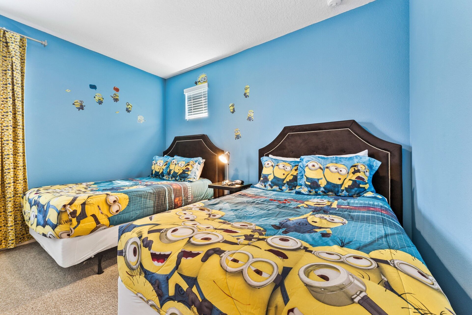 When it’s time to retreat, the bedrooms offer comfort with a touch of magic. Children will be thrilled by two imaginative themed rooms one inspired by a young wizard’s world, the other celebrating the beloved yellow animated troublemakers. Adults can relax in refined king and queen suites, each featuring flat-screen TVs and beautifully appointed en-suite bathrooms designed for true relaxation.