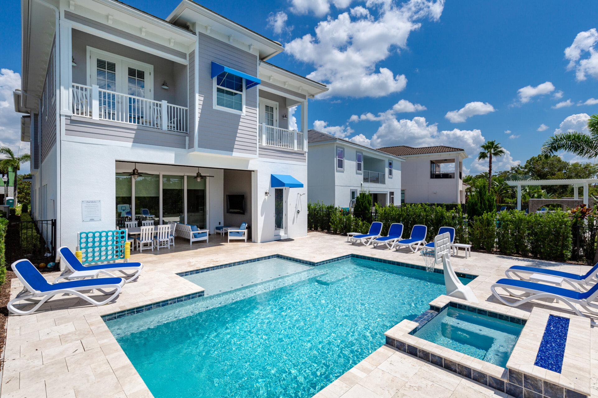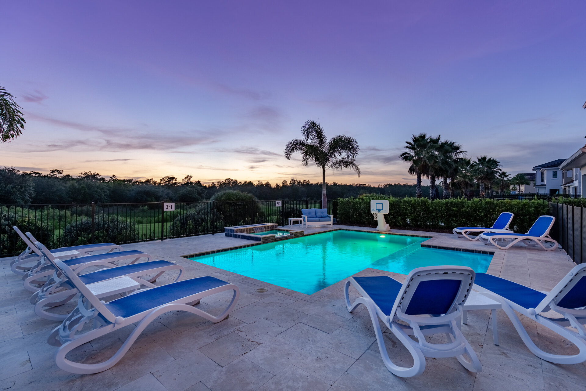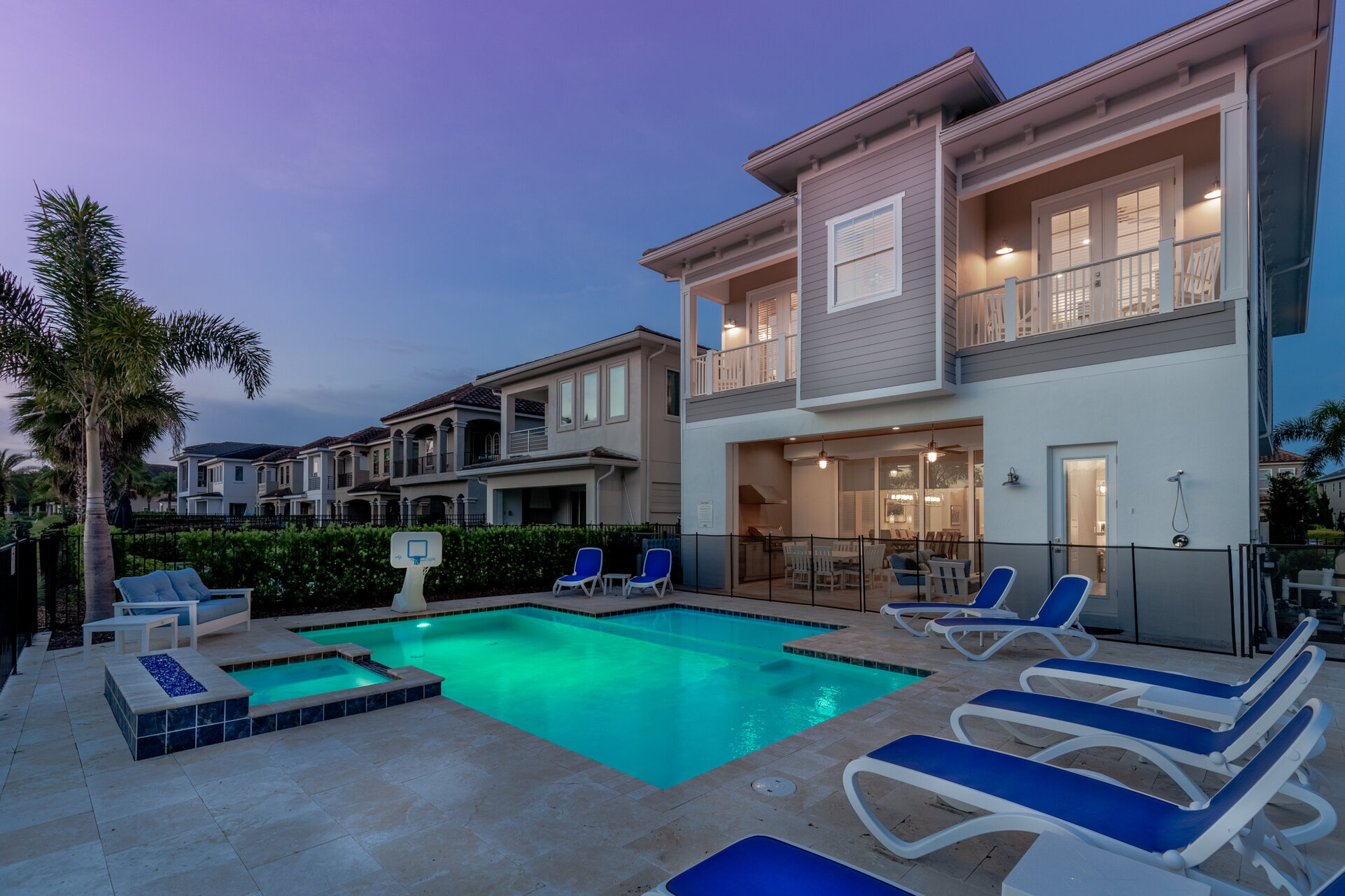 Be welcomed into luxury from the moment you step inside the door. Every single detail in this home was created for your dream vacation! All of the amenities you need are located at this gorgeous new villa, complete with modern luxury furnishings, a fun game room, custom themed kids bedrooms, secret playroom, private West-facing pool with a large deck, and a summer kitchen.