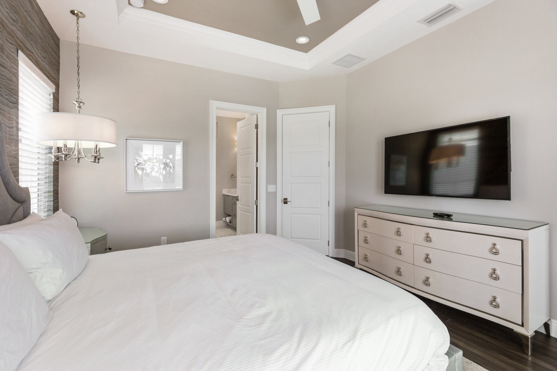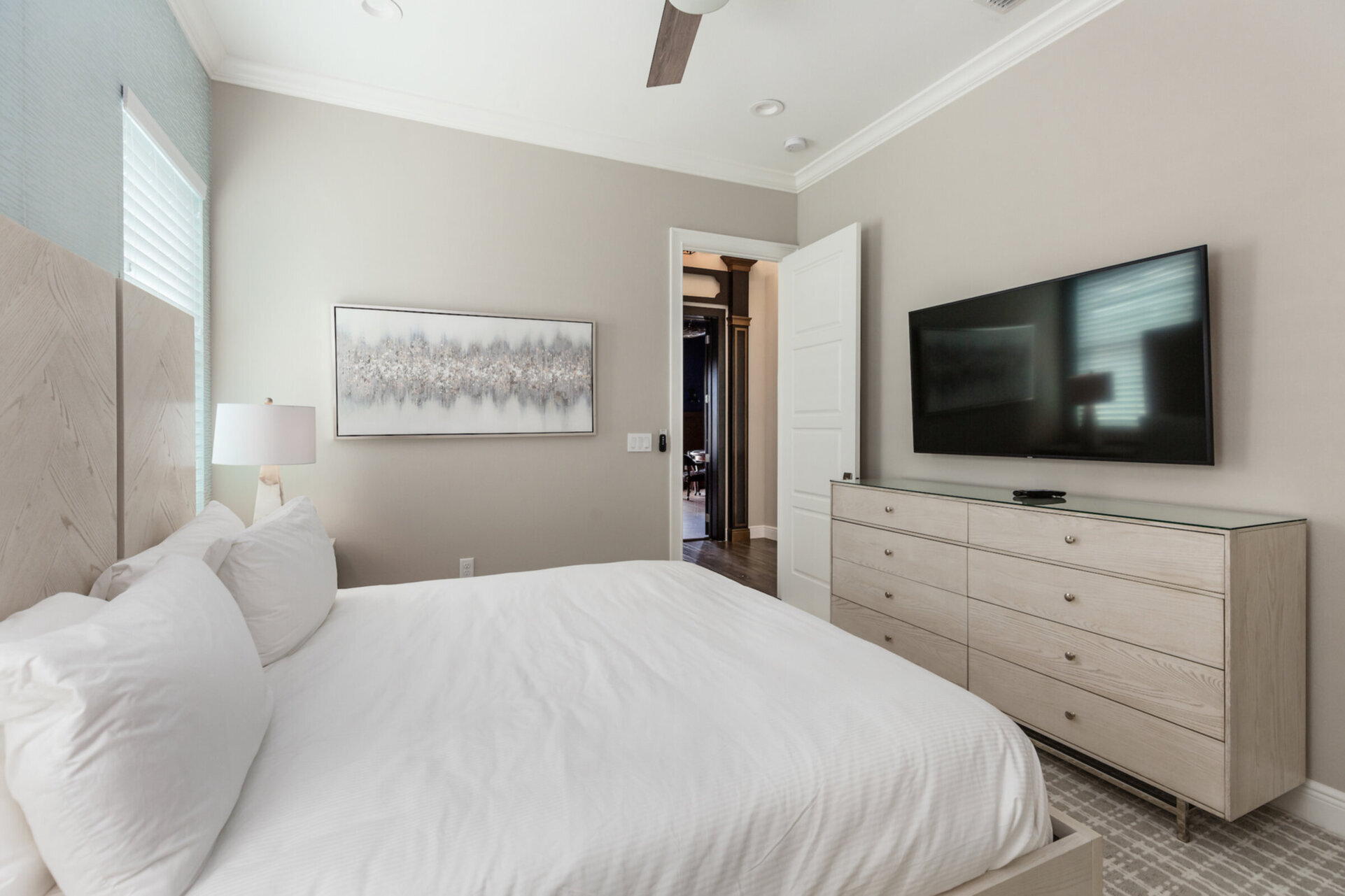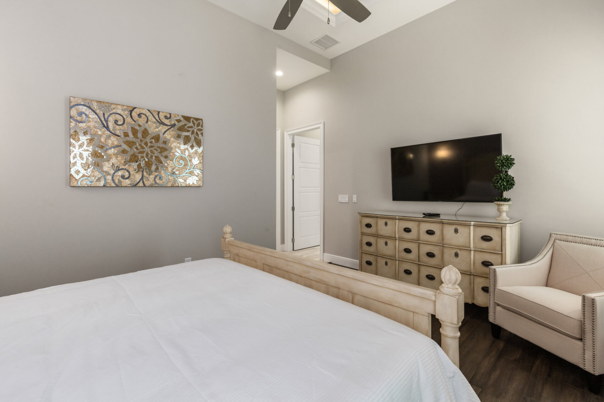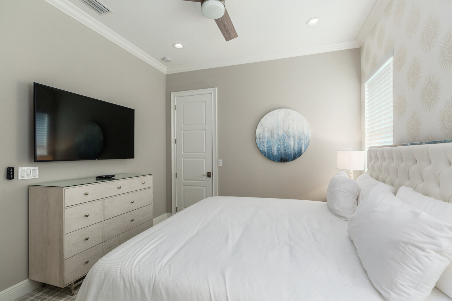This villa has 7 bedrooms in total, with 2 incredible custom-built children's bedrooms. Your little pirates will be shouting anchors away in this nautical bedroom, featuring a pirate ship with 2 full-sized beds. Sail right into the connected secret playroom that has a large flat-screen TV for kids to watch movies or play PS4 games on. The secret room features floating candles from the ceiling so kids will feel like they've entered a world of magic. For those who want a more majestic slumber, on the opposite side of the playroom is the customized princess castle bedroom. Climb into the castle and cozy up in one of the two full-sized bunk beds. A jack and jill bathroom is shared between both bedrooms, with two vanities designed to fit each bedroom's theme.