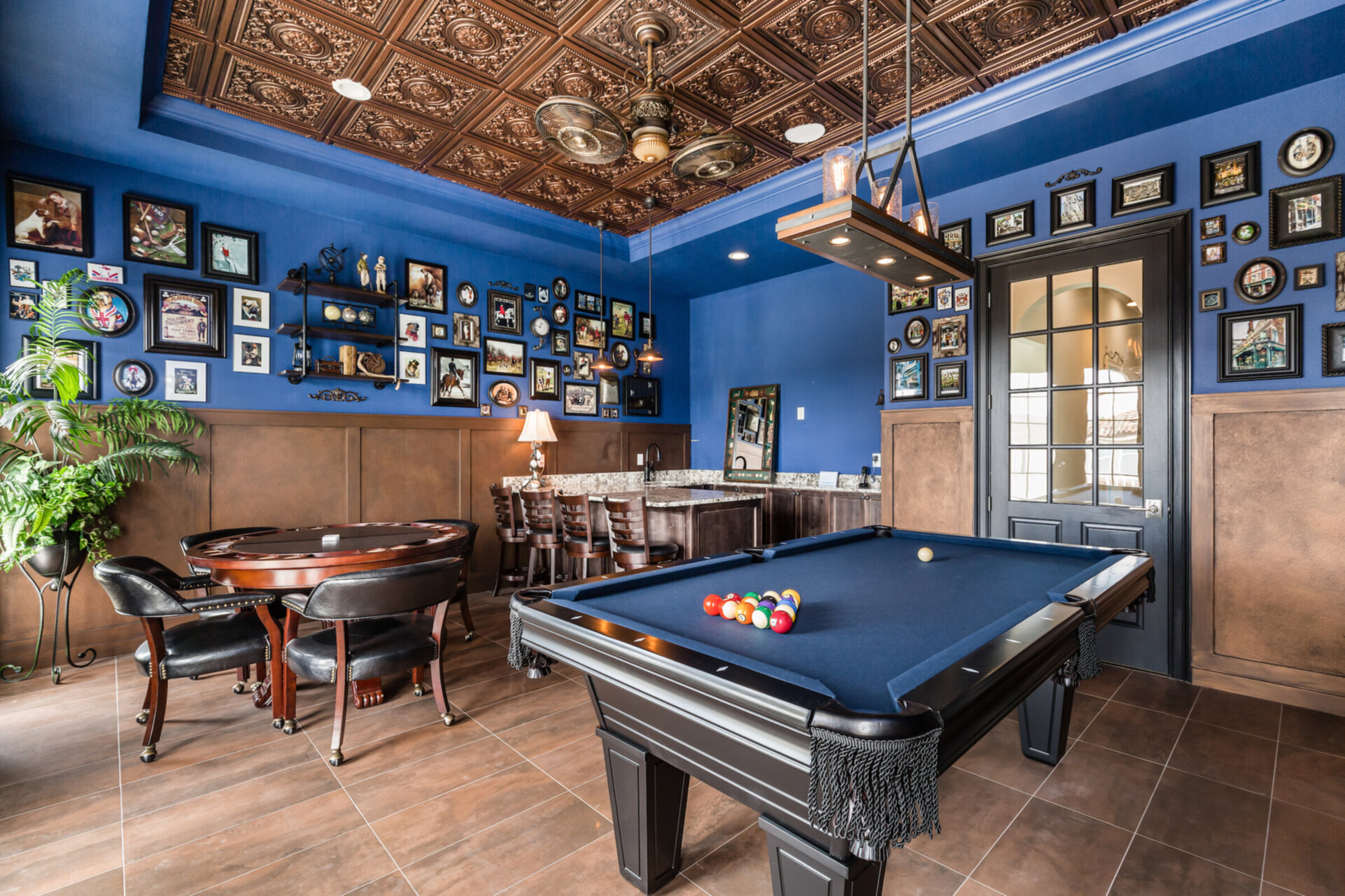 You will be awed by the dramatic painted hallway ceiling and LED lights that lead into a spacious kitchen, dining, and gathering room. Watch your favorite sporting events or shows on the 86-inch SMART TV. At night, drop down the concealed, automatic 12-foot projection screen and watch movies with the whole family.