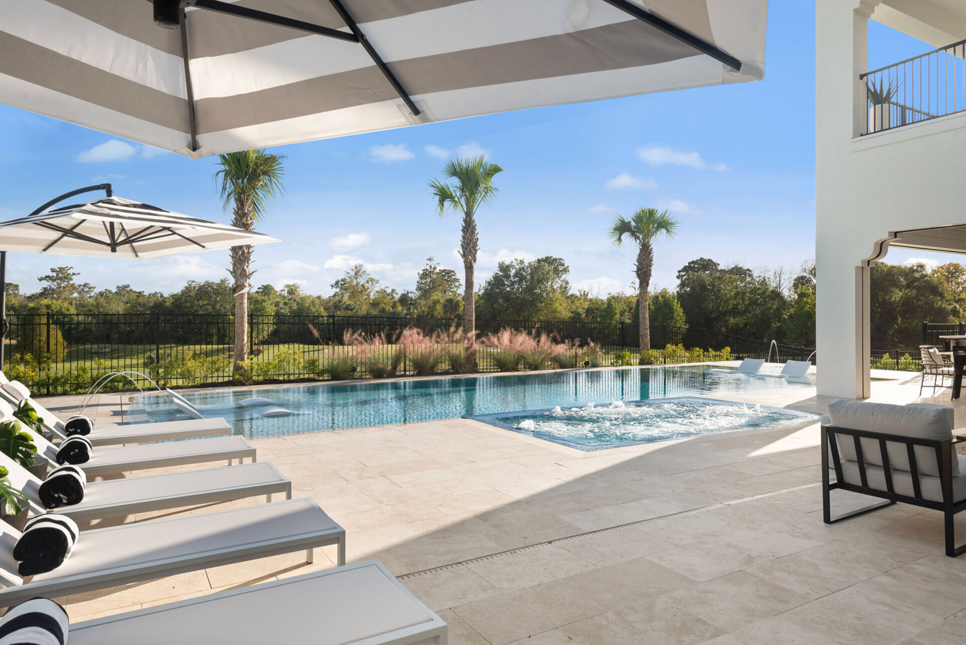For those who love the outdoors, the private lanai beckons with a sunny south-facing pool, a summer kitchen, and ample seating to dine al fresco while enjoying the breathtaking views of the award-winning Tradition Course designed by Jack Nicklaus.